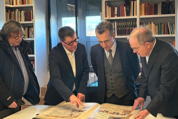 On 30 January, the Alamire Foundation had the pleasure of welcoming Xavier Lapeyre de Cabanes, the French Ambassador to Belgium, together with his delegation. During their visit they were given an in-depth look at the organization's mission and activities. In the House of Polyphony, they were introduced to the rich collection of instruments that supports the Alamire Foundation's valorization projects. The delegation then continued to the Library of Voices, the beating heart of our scientific research, where they were introduced to the innovative methods used in our high-tech labs in order to digitize, analyze, and disseminate musical heritage.