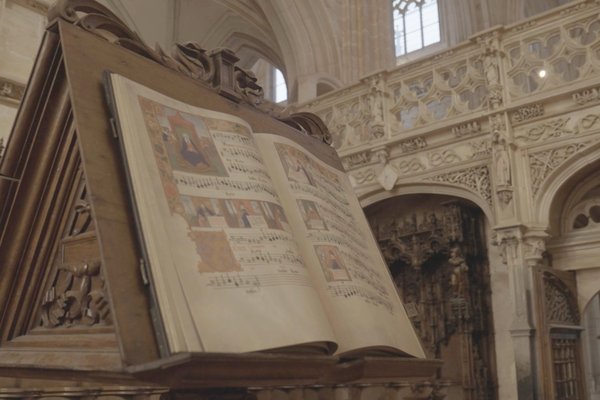 Since September, the Royal Monastery of Brou in Bourg-en-Bresse, built on the orders of Margaret of Austria, has been displaying a facsimile of the Mechelen Choirbook on a beautiful wooden stand in the choir of the monastery church. The Alamire Foundation produced this highly detailed, full-size facsimile as part of the Leuven Library of Music in Facsimile series.