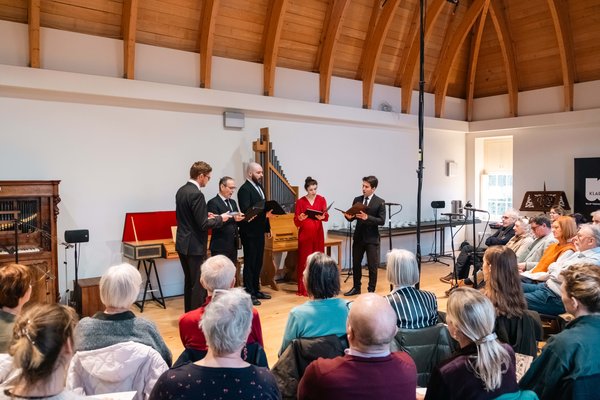 On Monday 3 February, as part of the Voices of Passion festival, the Alamire Foundation merked the start of the festive year celebrating the 600th anniversary of KU Leuven. During a prestigious opening concert in St. Peter's Church, the vocal-instrumental Sollazzo Ensemble, led by Anna Danilevskaia, brought to life the vibrant artistic life of six centuries ago in a brand new production with no less than twenty musicians. In preparation for this world premiere, Sollazzo was in residence at the House of Polyphony for two weeks. The Flemish radio Klara did a live broadcasting of the concert and in-depth interviews on the cultural programming of 600 years of KU Leuven.